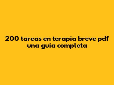 200 Tareas En Terapia Breve PDF – Una Guía Completa