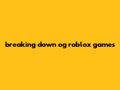 Breaking Down Og Roblox Games