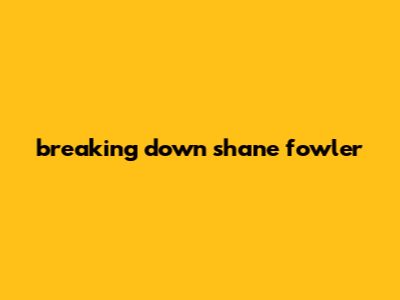 Breaking Down Shane Fowler