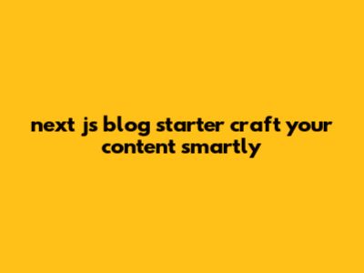 Next.js-Blog Starter | Craft Your Content Smartly