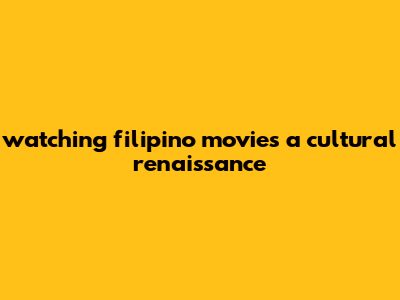 Watching Filipino Movies: A Cultural Renaissance